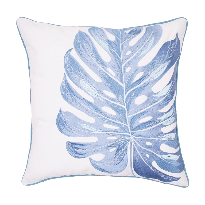 Blue Monstera Pillow, In/Out, 100% Polypropylene