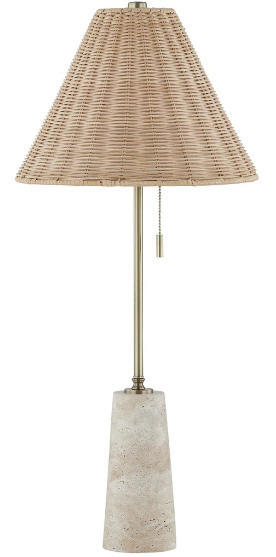 Buffet Lamp on Travertine Base w/Rattan Shade