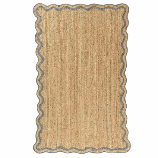 Natural Jute Rug Runner w/ Denim, Scalloped Edges