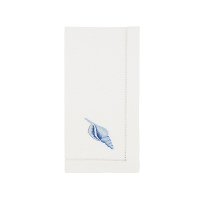 Embroidered Blue Shell on White Napkin, S/6 Cotton