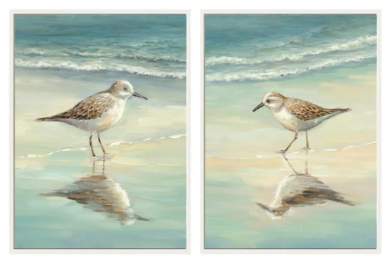 Assorted 2 Sandpiper Reflections Embellished Giclee Framed Art