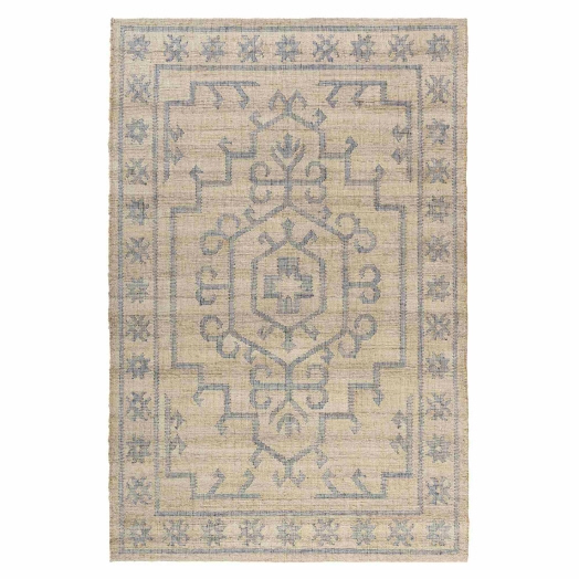 Willow Natural/Light Blue Rug Runner, Jute/Wool/Cotton Blend